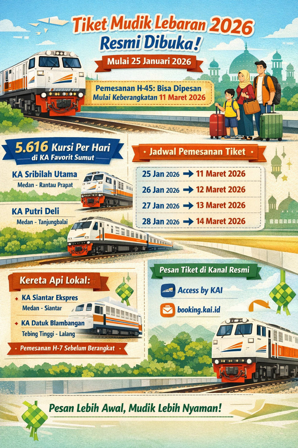 Jangan Sampai Kehabisan! KAI Sumut Buka Tiket Kereta Lebaran 2026 Mulai 25 Januari